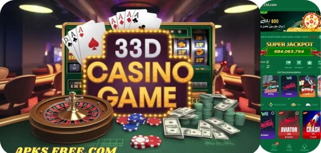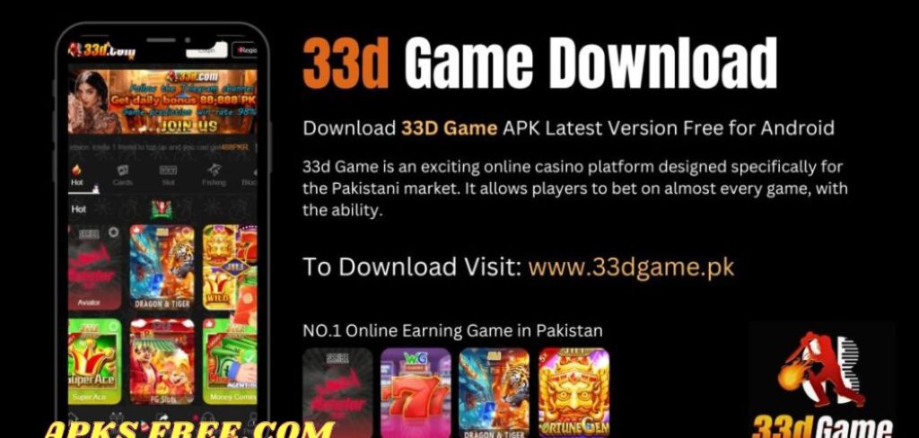 33D Game is an online gaming app designed mainly for Pakistani users who want entertainment and a chance to earn money. It combines different types of games in one place, such as slots, card games, and sports betting.